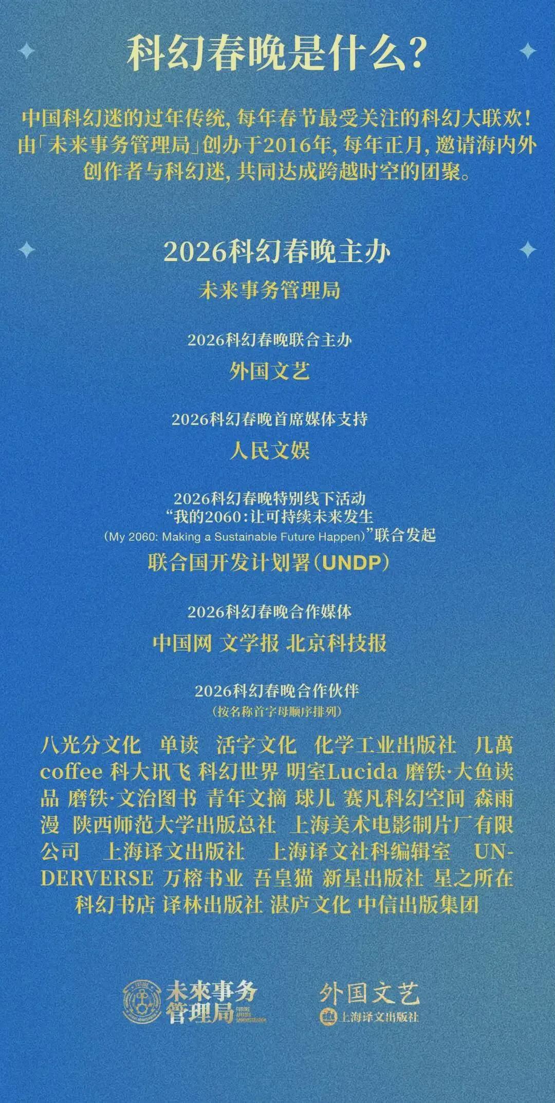 3月8日:未来局将与联合国开发计划署(UNDP)联合发起科幻春晚特别线下活动——“我的2060:让可持续未来发生(My 2060: Making a Sustainable Future Happen)”。